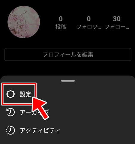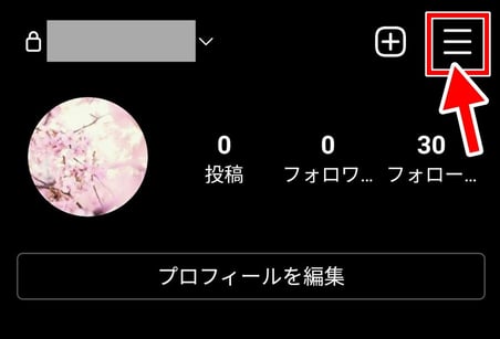 (1)認証バッジをリクエストするアカウントのプロフィールへ移動し、右上の三本線をタップする。