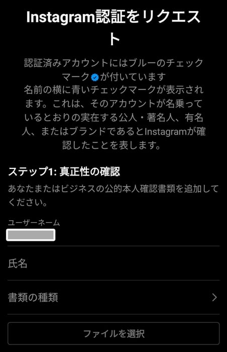 Instagramの認証バッジは本物であることを証明するシステムなので、本人確認できる公的な書類の提出を求められます。