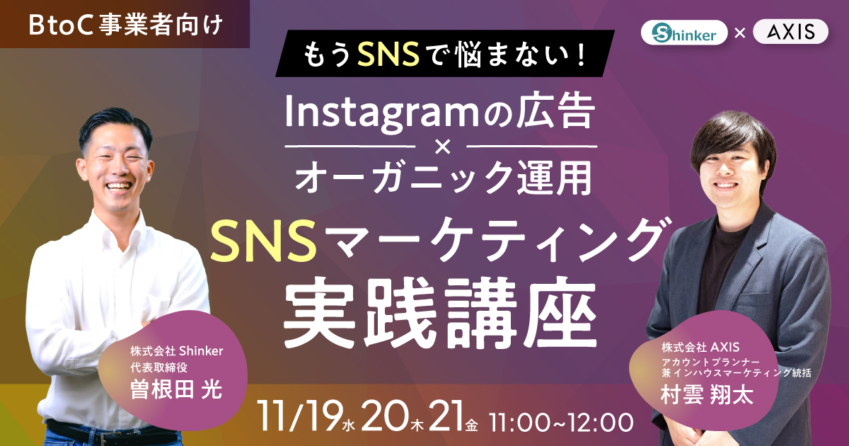 【11/19~11/21開催】もうSNSで悩まない!Instagramの広告×オーガニック運用のSNSマーケティング実践講座